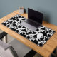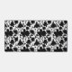 This stunning pattern is an overall black and white pattern. It features floral elements with leaves. Perfect for any decor, this pattern stands out with the contrast of the black and white. Add elegance to your computer room or desk with this black and white desk pad.