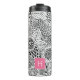 Black and White Floral Pattern Monogrammed Thermal Tumbler