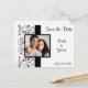 Add your own photo to our custom Save the Date postcards with an elegant black and white floral swirl design. Easy to use template - just add your photo, and enter the names of the Bride & Groom, along with the wedding date in the space provided.