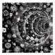 Original linear design of black and white flowers with the optical illusion of a tunnel. Creative hand drawn flowers and leaves spiral in decreasing circles. The perfect design for those who want something beautiful but different.