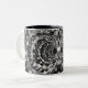 Original linear design of black and white flowers with the optical illusion of a tunnel. Creative hand drawn flowers and leaves spiral in decreasing circles. The perfect design for those who want something beautiful but different.