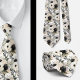 The black background tends to give the tie a more formal, classic feel, while a white background might offer a lighter, fresher aesthetic. The contrast between black and white adds to the versatility of the tie, making it suitable for both formal occasions like weddings or business events and more casual settings. The overall pattern ranges from vintage-inspired florals to more modern, abstract interpretations, offering a unique twist to traditional tie designs.