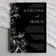 Black and White Floral Wedding Invitation. Elegant organic hand drawn line sketch with black background and white text contrast to make this invitation really pop!
