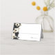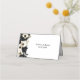 Modern black and white floral wedding table place card that includes the bride and groom's names along with their wedding date.