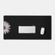This custom desk mat is printed with an elegant black and white design with a white daisy on the left and your name in script in the centre