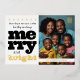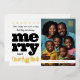 Bring a hearty laugh into your holiday season with our Modern Black and White Funny Merry and Bright Large Family Holiday Card with a pop of gold foil. Infused with modern and retro aesthetics, this card features a spot for a single photo, making it all the more personal and endearing. Bold and bright, just like your family's spirit, these flat Christmas cards come with a customisable front, where you can personalise your family name and the year. The back of the card offers space for a custom message, allowing you to pen down a heartwarming note or a hilarious joke, embracing the joyful chaos of your family and the season. Made for those who find humour in the hustle and bustle of life, this fun and cute holiday card is sure to bring smiles to the faces of your loved ones. Quality is assured as the cards are made from durable and environmentally-friendly materials. Add a unique twist to your holiday greetings this year with our Funny Merry and Bright Large Family Holiday Card. Designed by Simple Desert Designs Studio.