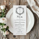 black and white foliage Crest wedding Menu