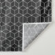 Black and white geometric pattern featuring an array of connected, outlined cubes, creating an optical illusion with a sense of depth and symmetry.