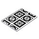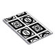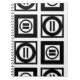 Bold geometric pattern features four black squares with white space between them. The two diagonally opposed thick squares each contain a thin black circle with a thick equal sign inside. In contrast, the two thin squares each contain a thick black circle that touches the square’s edges with a thin vertical equal sign inside.