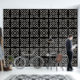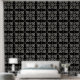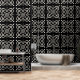 A stylish modern black and white geometric fleur du lys shapes and quatrefoil shaped peel and stick wallpaper wall treatment, to modernise your bath, kitchen, or any room. Perfect when you live in a rental apartment that needs your personal style and touches of design to make things pop. Peel and stick wallpaper is one of the best DIY hacks for apartment dwellers to give them more control over their home decor style! Go wild with patterns and colours. Comes in smooth and textured. Get the textured for bumpy textured walls, and smooth or textured for smooth walls.
