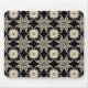 Black and white geometric pattern with a circular design, overlaid with aizome patterns, black fractal filigree, chinoiserie pattern, highly detailed pattern