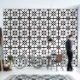 A stylish modern black and white geometric abstract shapes, peel and stick wallpaper wall treatment, to modernise your bath, kitchen, or any room. Perfect when you live in a rental apartment that needs your personal style and touches of design to make things pop. Peel and stick wallpaper is one of the best DIY hacks for apartment dwellers to give them more control over their home decor style! Go wild with patterns and colours. Comes in smooth and textured. Get the textured for bumpy textured walls, and smooth or textured for smooth walls.