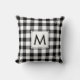 Black and White Gingham Pattern, Custom Monogram Cushion