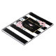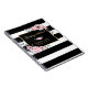 Elegant black and white striped floral notebook featuring pink flowers framing the wedding details. Easily personalise this black and white wedding notebook with your name(s) and date.