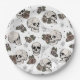 Black and White Gothic Skulls and Roses Halloween Paper Plate