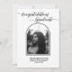 This elegant graduation announcement features a clean, modern layout with a timeless black-and-white aesthetic. At the top, a graceful script font reads “Congratulations Graduate,” adding a celebratory yet sophisticated touch. The centerpiece is an arched photo frame showcasing the graduate’s portrait, creating a soft, classic look that draws attention to the image. Below the photo, the graduate’s name, school, and class year are displayed in a simple, easy-to-read font for a polished finish. Perfect for high school or college graduates, this design blends minimalism with refined style, making it ideal for sharing this important milestone with family and friends.
