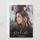 Black and white graduate script open house photo graduation. Add 4 of your favourite photos with an elegant script calligraphy and photo grid collage.