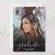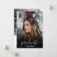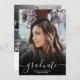Black and white graduate script 4 photos graduation announcement. Add 4 of your favourite photos with an elegant script calligraphy and photo grid collage.