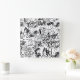 Black and White Graffiti Abstract Collage Square Wall Clock