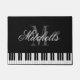 Elegant Black and white grand piano keys monogram door mat. Make your own custom monogrammed indoor / outdoor doormat with custom background colour and text. Add your own welcome message, family name, surname, initial letter or funny quote. Cute gift idea for new home / housewarming, wedding venue, store, instrument shop, company office, business, band, classical music orchestra, wedding event etc. Stylish script typography. Personalizable template. Create your own classy entry mat / rug for front door / entryway or hall. Customisable home decor / decorations for your chic house. Novelty gift idea for pianist, piano player, music teacher, pianoman, dad, mum, student etc. Available in small and big size.