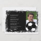 This graduation announcement has a modern funky design! The background is black with a white grunge frame and a black and white graphic of a soccer ball. Behind the soccer ball is a cutout to frame your photo and to the left is an area for your custom text. Very cool and a great way to celebrate your soccer star!
