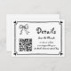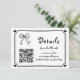 Black and white Hand drawn scribble whimsical retro French style wedding enclosure card. This enclosure card showcases a charming and playful design, highlighted by a hand-drawn illustration of a bow that exudes whimsy. It includes whimsical frame with hearts, a bow and the text "Details". It also includes a QR code for guests to scan for details.