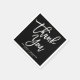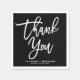 Customisable paper napkin featuring white hand-lettered script with black background This "thank you" napkin is perfect for weddings, graduations and similar events.