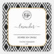 Elegant black and white calligraphy candle labels. Beautiful handwriting with font swooshes. On a modern chic geometric pattern.