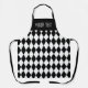 Black and white harlequin pattern custom kitchen Apron for men and women. Cute bib style cooking and baking aprons with stylish diamond shape print design. Personalised with your name or funny quote. Fun fashion print with elegant typography template. Create your own unique Birthday party gift for mum, bride, bridesmaids, mother, wife, daughter, sister, friend, grandma, kids, boss, co worker, chef, cook, colleague, employee, barista etc. Available in small, medium and big extra large size. Also great for Mardi gras, dinner party, art & crafts work, bakery shop, DIY home projects, business, restaurant work, coffee shop, bistro etc. Long and short versions available. Full All over print.