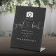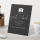 Black And White Heart Script Photo Guest Book Pedestal Sign