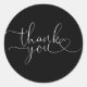 Black And White Heart Script Thank You Classic Round Sticker
