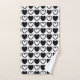 Abstract digital art of rows of white hearts that are outlined in black with alternating solid black hearts.