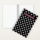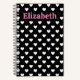 Classic, small white hearts on a black background create a simple pattern for expressing love anytime! Shown here on a spiral bound notebook with several paper styles available. You can adjust the size of the pattern any way you prefer and change the black background colour if desired on both sides. Personalise it with a name or any text.