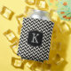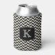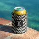 Black and White Herringbone Pattern with Monogram Can Cooler