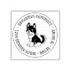 Black and white cartoon illustration of a sitting husky dog with a happy grin, tongue out. A simple kerchief is tied around its neck. Please note, you may need to adjust the information you enter by adding or deleting some characters or spaces, to make the name and the address properly aligned.