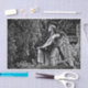 Black and white image kneeling angel tissue paper