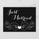 Proudly tell the world you and your sweetheart just tied the knot with this fun black and white just married love heart wedding announcement postcard. Just Married postcards are the economical alternative to expensive wedding announcements as they require no extra envelopes and need less postage to mail.
