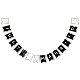 Elegant, boho, chic black and white wedding bunting flags with gilded silver and gold flowers lace and modern calligraphy script. Just Married!