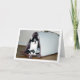 Black and White Kitten in Cat Carrier Greeting Card. You can easily customize this product for free if you would like to add wording or change the color of the background.