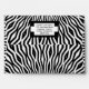 An envelope with a stylish black and white address panel with a drop shadow which gives the illusion of a stick on label. A smaller version of the label is repeated on the back which can be customised with your return address. This version has a sun ray black and white wrap around design.