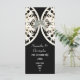 Traditional classic black and white lace faux paper cut style old traditional vintage damask pattern and a pretty silver bow. A sophisticated pretty and modern elegant luxury lacy formal marriage church wedding program announcement which can be easily personalised with the bride and grooms names and other bridal guests text to the templates to create your own chic luxurious professional marriage program for your special occasions events and celebrations. Easily customise the background colour, from a huge range of custom colours to create your own totally different look to this unique contemporary faux paper cut vintage themed luxury invite. Visit the PERSONALIZED_ WEDDINGS STORE for matching coordinated wedding suite sets.