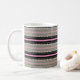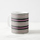 An old-fashioned look on this mug with black and white lacy panels, and ribbons of hot pink running through them. Very feminine and girly.