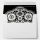 This white linen 5"x7" envelope is adorned on the inside flap w/ an original digital painting of dainty white lace against a black background, tailored borders on front & 3 customisable text fields for return address on back. Large enough to hold your wedding & reception invitations, RSVP card & return envelope/