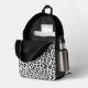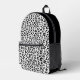 This stylish backpack features a trendy white and black leopard print design, Perfect for adding a touch of wild flair to your everyday look.