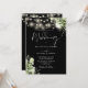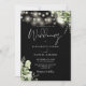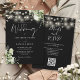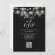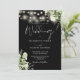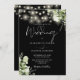 This elegant black and white wedding invitation, featuring pretty string lights and floral greenery, can be personalised with your information in chic typography with your wedding website details and your QR code on the reverse. Designed by Thisisnotme©