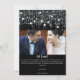 Announce the beginning of a beautiful forever with our elegant Hanging Lights Wedding Announcement, a charming addition to our exquisite Hanging Lights Wedding Suite. This announcement captures the magic of love and celebration, beautifully showcasing the joyous union of the newlyweds. The front of this announcement features a clean white background adorned with the heartfelt words "Just Married," accompanied by a captivating photo of the beaming bride and groom. Below, their names and wedding date shine brightly, making this announcement a treasured keepsake for all who receive it.