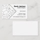 A drawing of black and white lines points to the contact information of a graphic artist on this business card. Simple, clean, sharp, very professional-looking.