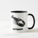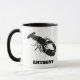 Create a personalised gift for anyone who loves lobsters. This coffee mug has a black and white colour scheme with an illustration of a lobster in black and a name (or other text) below in bold black lettering. The graphic and text appear on both sides of the mug.