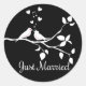 Black and White Lovebirds Just Married Wedding Classic Round Sticker