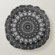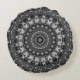 Black and White Mandala Geometric Design Round Cushion